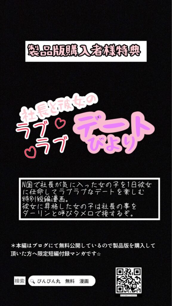 一応購入者様特典としてテンチー短編「社長と彼女のラブラブデートびより」を収録しました⭐︎