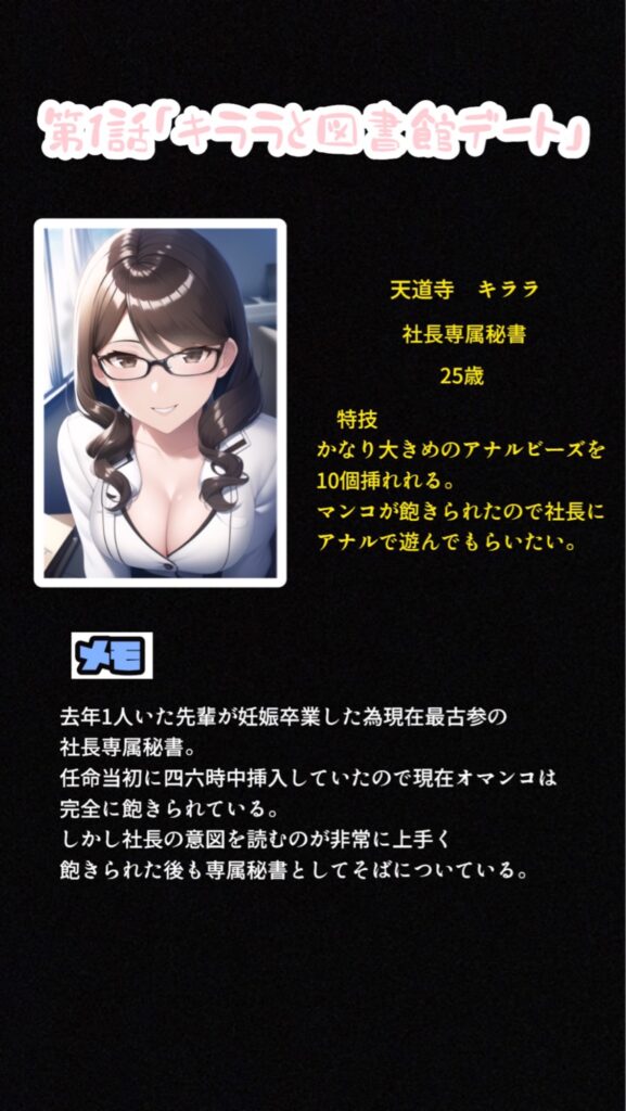 第1話は専属秘書のキララちゃんのお話です。